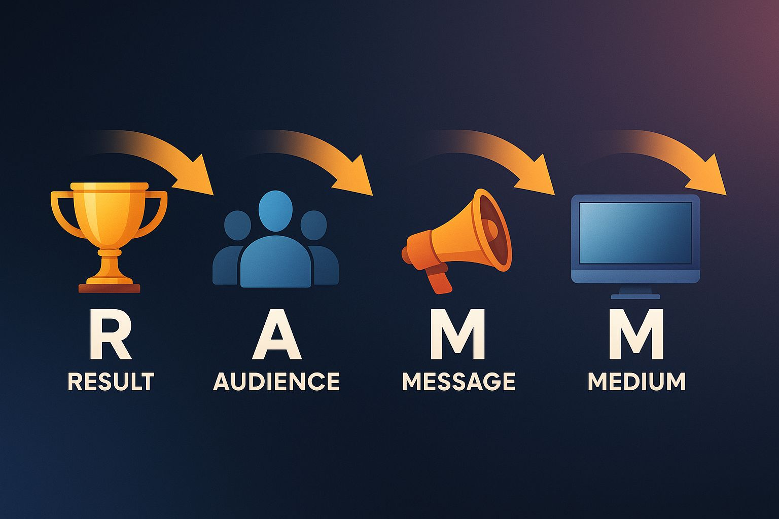 Flip the order. Use the RAMM framework, Result > Audience > Message > Medium, to design every piece of marketing from the outcome backwards, so you speak to the right people, with the right message, in the right place, and stop paying for noise. This aligns with broader best practice: research consistently shows that campaigns built on clear objectives, defined audiences, and tailored messaging deliver stronger ROI than activity first approaches.